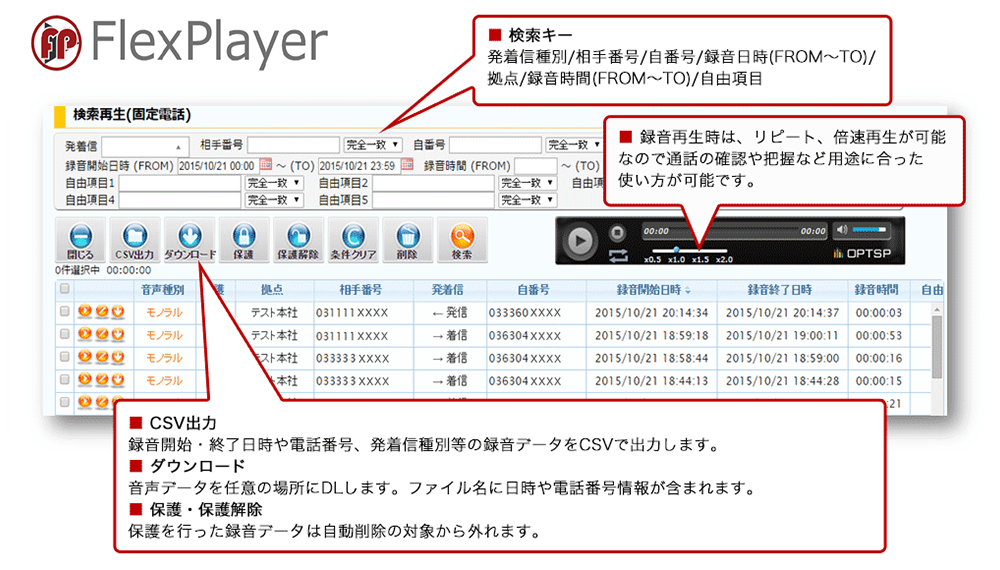FlexPlayer®サービス(録音データ保管・検索サービス)※