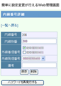 内線増減、グルーピング、呼び出し設定、発信設定、転送設定など■ 専門の業者に依頼する事なく、お客様ご自身で簡単に行うことができます