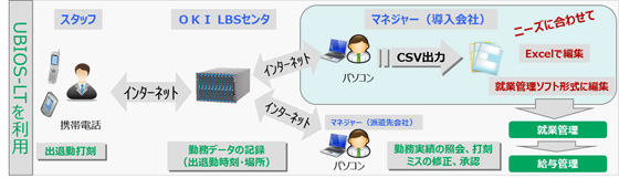 「UBIOSシリーズ」は、インターネットと携帯電話、位置情報と時刻情報を効果的に組み合わせたSaaSサービスの総称です。