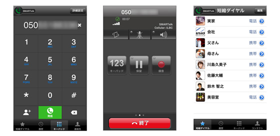 SMARTalkで通話した内容を録音することができます。録音した音声はアプリ内で再生することが可能です。