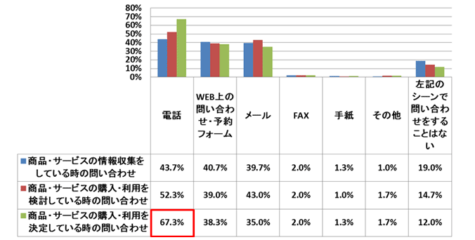商品・サービスの購入・利用決定時は約7割が「電話」で問い合わせると回答