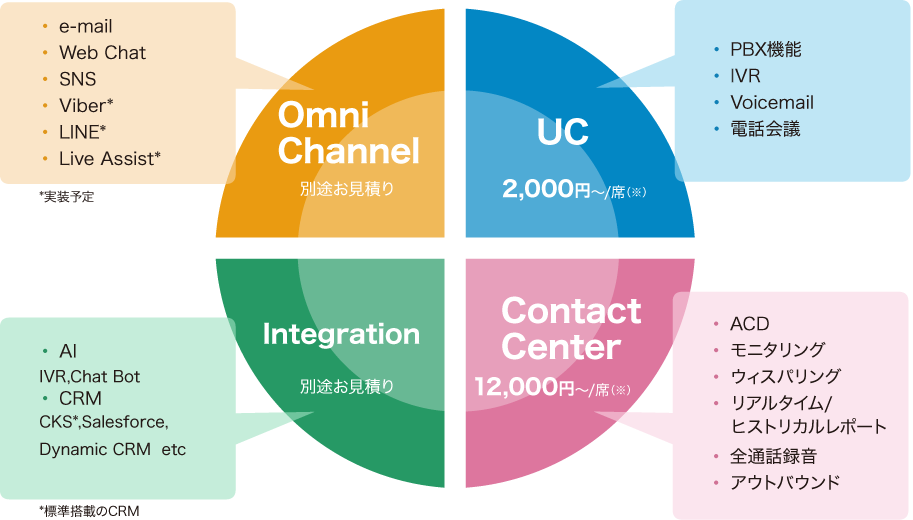 ・PBX機能 ・IVR ・Voicemail ・電話会議 ・ACD ・モニタリング