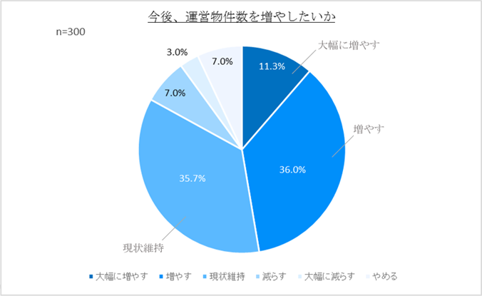 「今後も運営物件数を増やしていきたい」との回答は約半数。