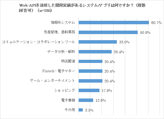 半数以上の開発者が、幅広い分野でWeb-APIを活用した開発実績あり