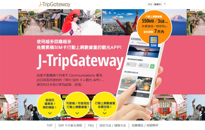 「J-TripGateway」サービスサイトイメージ(中文(繁体字))