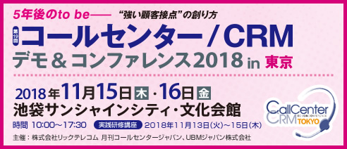 | 名称 | コールセンター/CRM デモ&コンファレンス2018 in 東京(第19回) |
